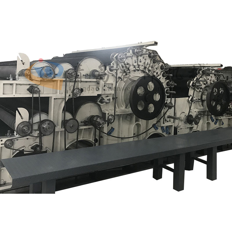 雙錫林梳理機(jī)主要是將前道工序棉網(wǎng)層進(jìn)行單纖維狀態(tài)分散過(guò)程,并且等寬均勻的輸出到鋪網(wǎng)機(jī),雙錫林梳理機(jī)適用于針刺,水刺等短纖維無(wú)紡布生產(chǎn)線(xiàn)核心部位,一般與鋪網(wǎng)機(jī)配合使用,也可以直接鋪網(wǎng)使用。